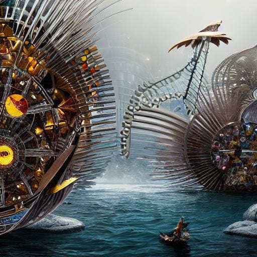 In this new reality, the kinetic sculptures serve as symbols of unity and emotional connection among people, transcending barriers of language, culture, and geography. The imagined reality not only showcases the potential for AI-generated original thought but also demonstrates the possibility for a better, more emotionally connected world.